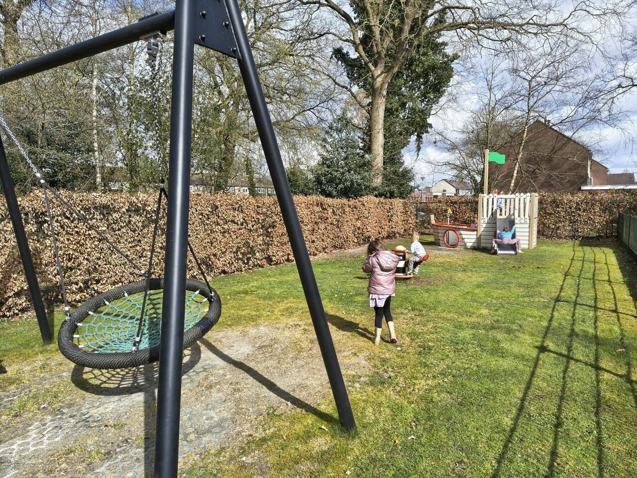 Aan de Brummelstraat vind je onze speeltuin: een fijne, vertrouwde plek waar kinderen uit Hollandscheveld en omgeving naar hartenlust kunnen spelen. Klauteren in het klimtoestel, rennen over de speelweide, een partijtje op het pannaveld of lekker zwieren in de mandschommel — alles mag, alles kan.
